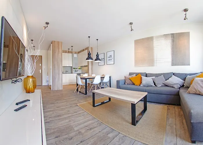 Apartamenty Sun & Snow Aquarius Sopot з видом на на внутрішній двір розташовані на відстані 10 хвилин їзди машиною від парку Олівський. Гості можуть користуватися Wi-Fi та приватною парковкою, на території.